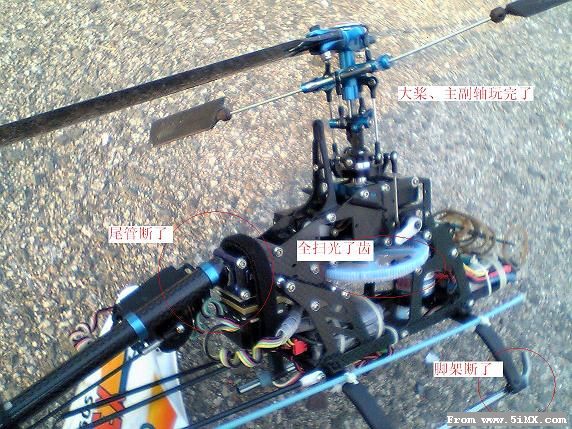 悬停练了三个月,今天第一次飞航线,起飞时就发现风大了,每有重视;jj一下子就飞的老高;尽力纠正油门,在下降到地面的瞬间,jj发生偏移,大桨切断了小树枝,重重跌倒地上!!!经检查,损失大桨一副,主轴一根,大桨横轴一根,其他暂时未发现,损失应不大。只是难得的一个长假,只能练习模拟器打发时间咯,郁闷中。。。2008-2-5